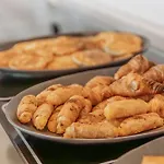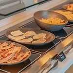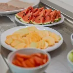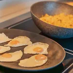En amerikansk frukost serveras på morgonen. Det här boendet ligger invid Cafe Paraga.